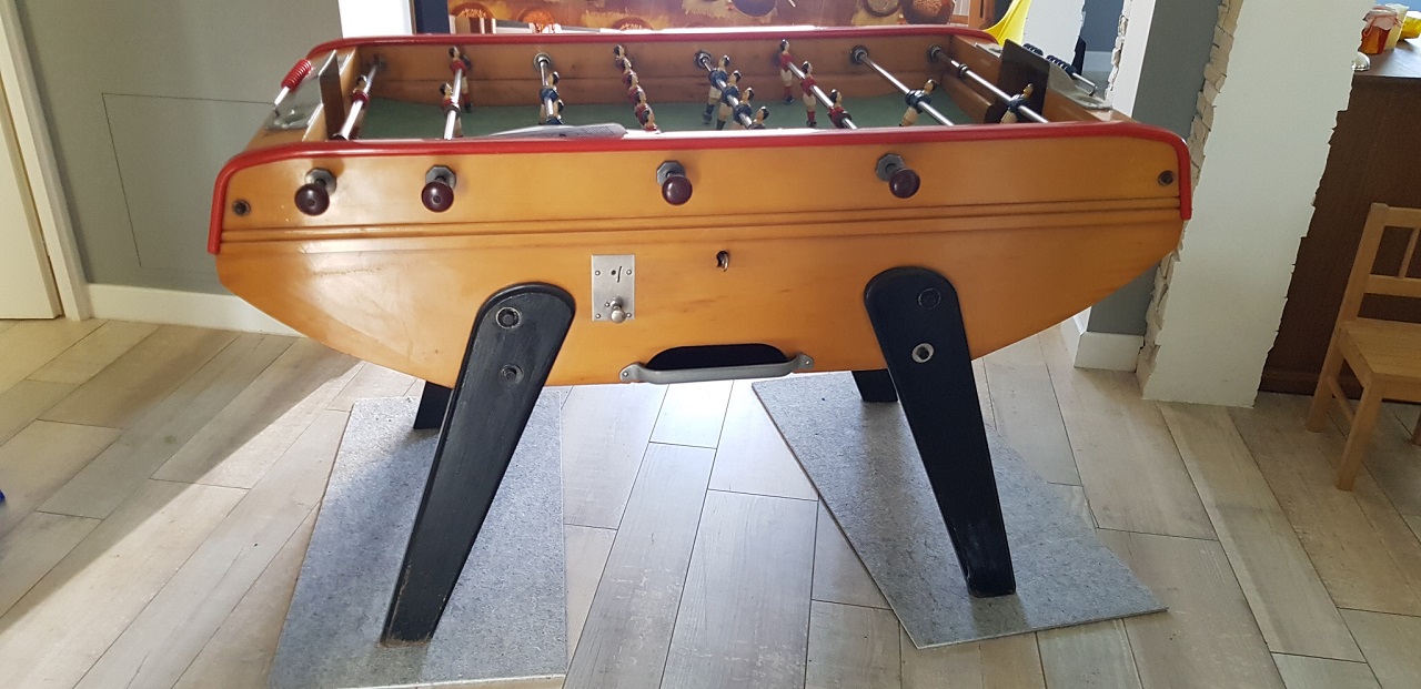 Je l'ai nettoyé mais il y a du boulot pour lui refaire une jeunesse : redressement des barres, (surement) changement des ressorts, repeindre les joueurs... mais surtout j'aimerai votre avis sur la manière de remettre le fond de ce dernier, mais je vais chercher avant si pas déjà couvert par un autre et sinon ouvrir un post dédié pour cela.