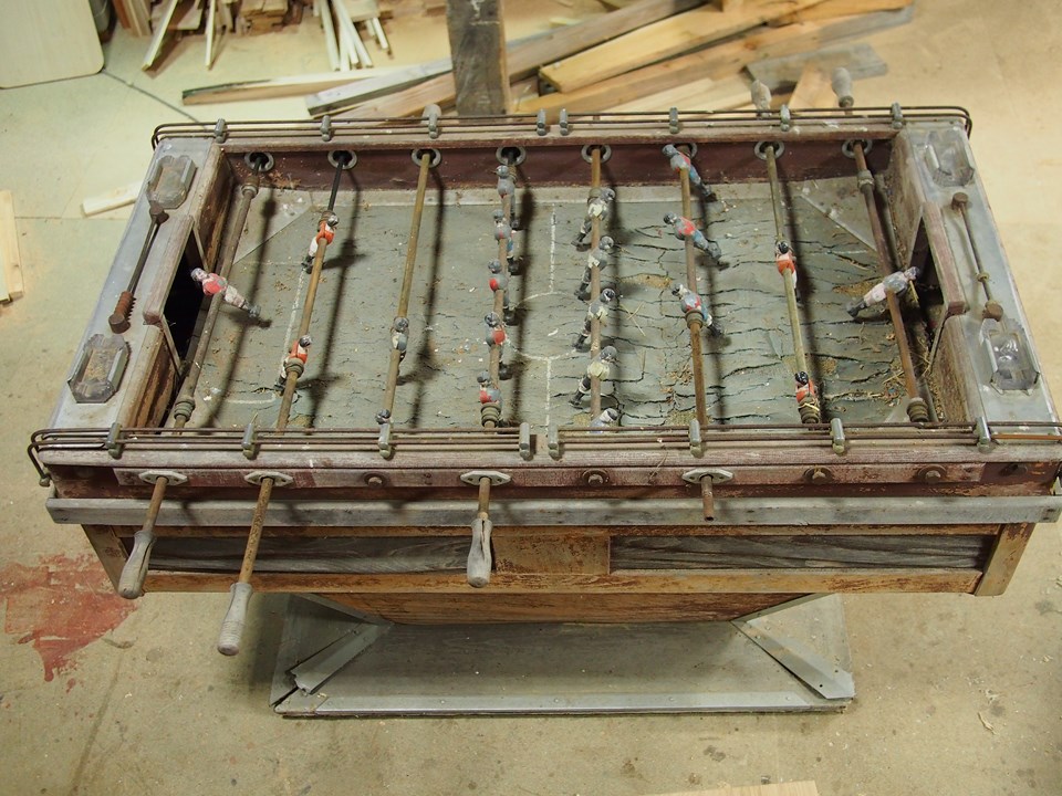 je viens d'acheter un baby Finale de 1952 dans un piteux état mais complet (mise à part 4 joueurs remplacés par des RP et un joueur manquant, les poignées bois, la tirette du monnayeur)... l'objectif est de le remettre en fonction pour un usage familiale en gardant un maximum de pièces d'origines et un aspect de meuble ayant bien vécu avec une belle patine.
