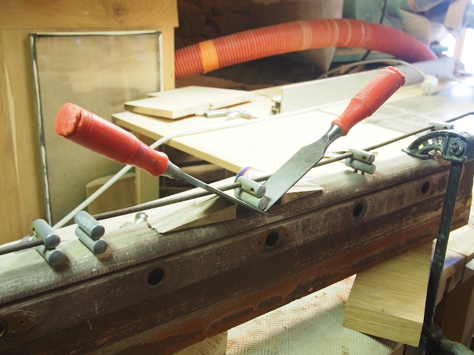 pour restaurer la caisse, je compte tous dé-sablembler pour faciliter le ponçage, relativement facilement car la colle (animale?) est HS... par contre ils ont cloué certains assemblage tenon-mortaise... pas cool! si vous avez une astuce pour sortir les pointes sans abimer le bois