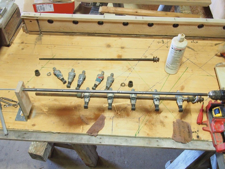 fin d'aprèm j'ai réussi à démonter ces satanés tiges en fer (sauf 2 qui sont passées au dégripant...) et désassemblage de la partie de jeu: