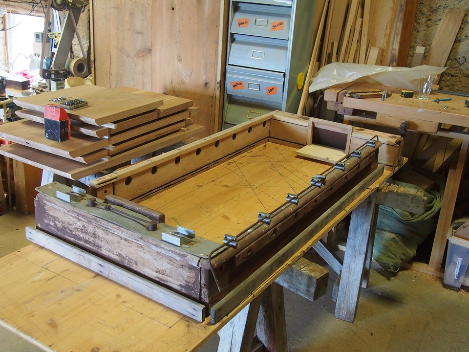 pour restaurer la caisse, je compte tous dé-sablembler pour faciliter le ponçage, relativement facilement car la colle (animale?) est HS... par contre ils ont cloué certains assemblage tenon-mortaise... pas cool! si vous avez une astuce pour sortir les pointes sans abimer le bois