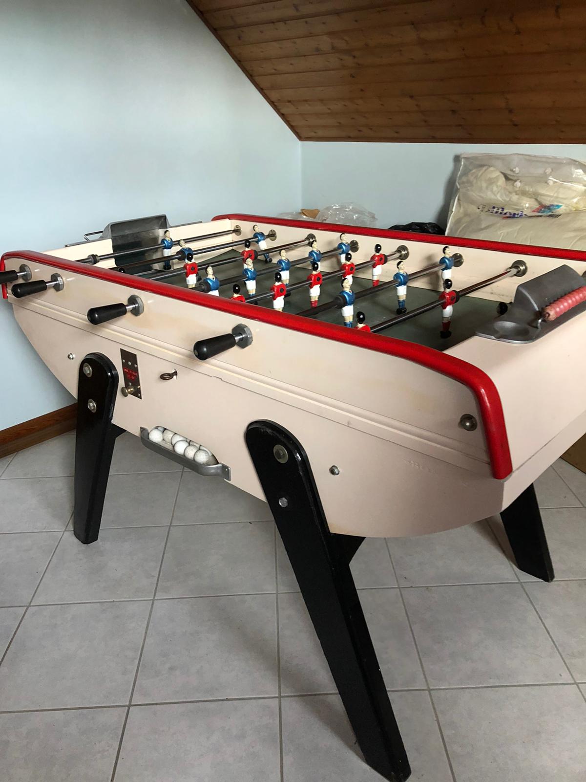 effectivement je rejoins l'avis des autres, ce Bonzini est post 1970. Les guides en bois pour le verrouillage n'étaient pas présents dans les 60's ni ces compteurs de points. Ils ont l'air vieux donc propablement d'origine sur ce baby. Il est vrai aussi qu'au fil du temps, certains baby ont été reconstitués, réparés avec ce qu'il restait de modèles défoncés. Un Bonzini sans numéro c'est bizarre mais le mien a bien un numéro raturé sous le cendrier...